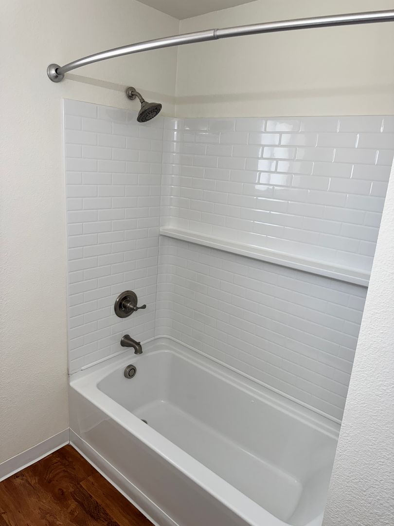 Relax in the rejuvenated bathroom, featuring a newer vanity, light fixture, and a tub in the shower. Both bedrooms are generously sized with large closets, new ceiling fans, newer blinds, and window screens.